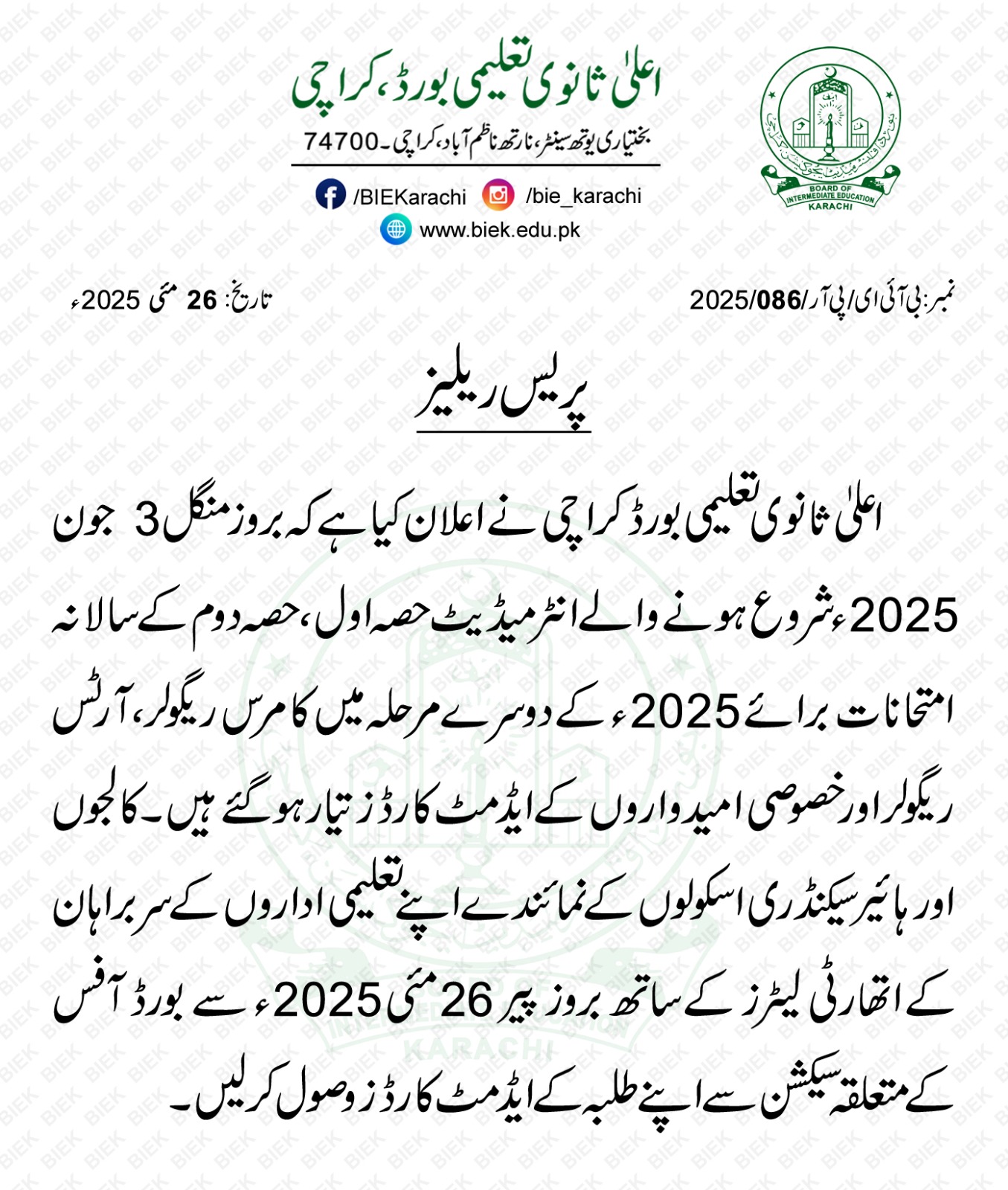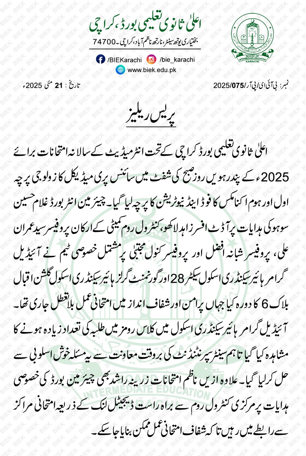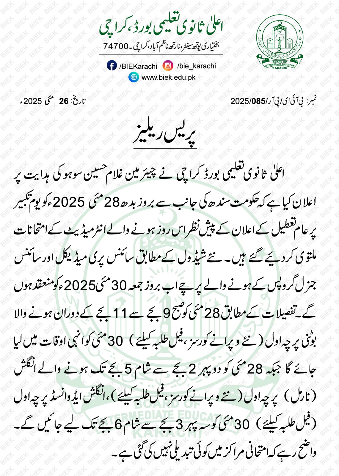 © 2025 Board of Intermediate Education Karachi - Pakistan. All rights reserved.