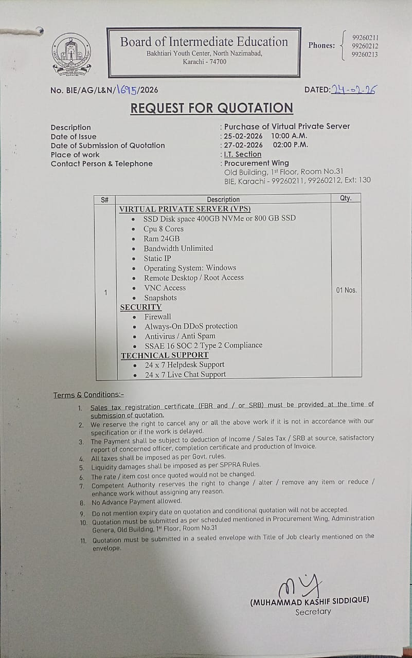 Request for Quotatioins for the purchase of Virtual Private Server ( 24-02-2026)