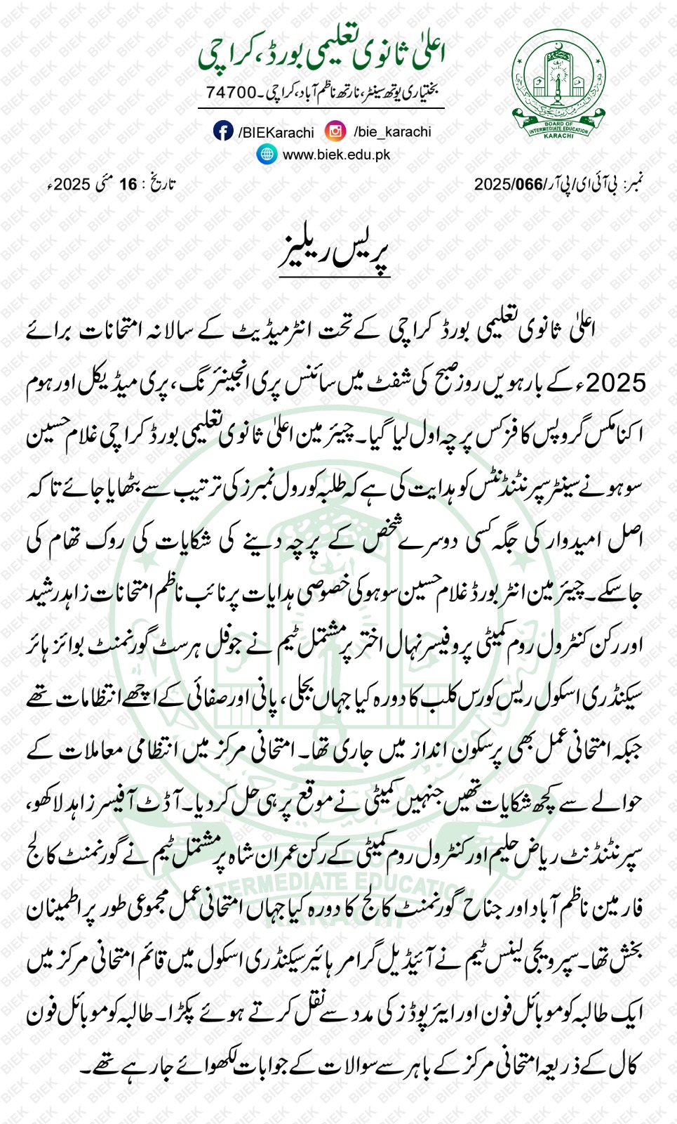 © 2025 Board of Intermediate Education Karachi - Pakistan. All rights reserved.