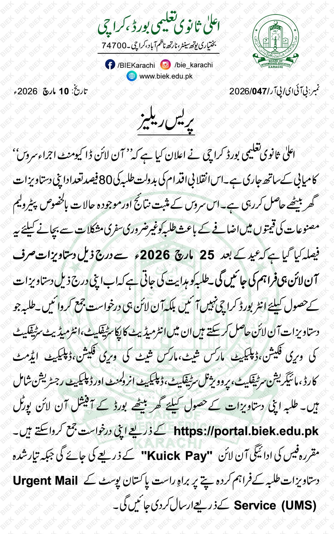 © 2026 Board of Intermediate Education Karachi - Pakistan. All rights reserved.