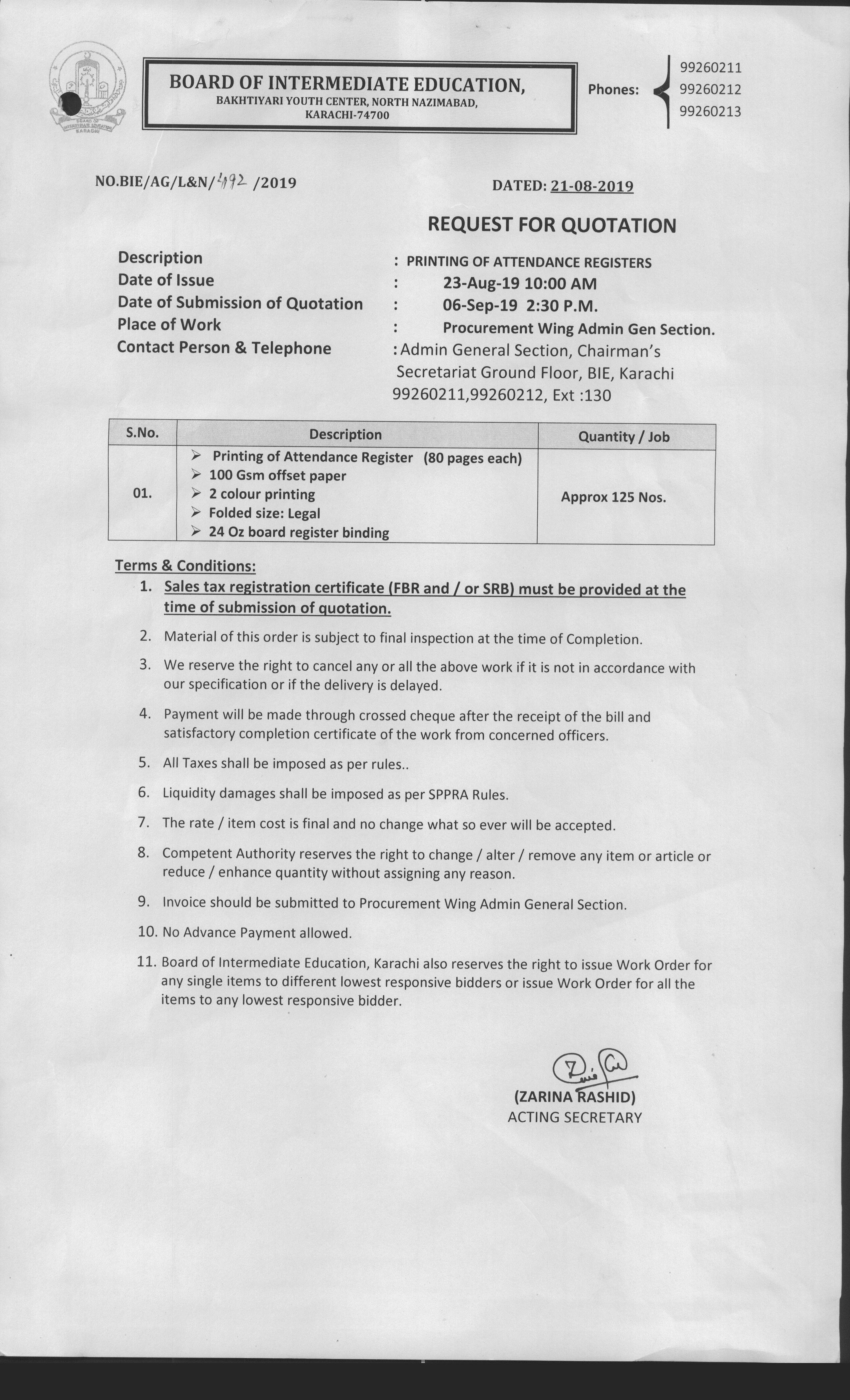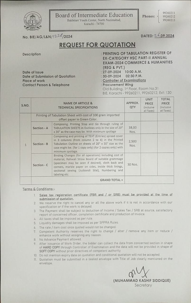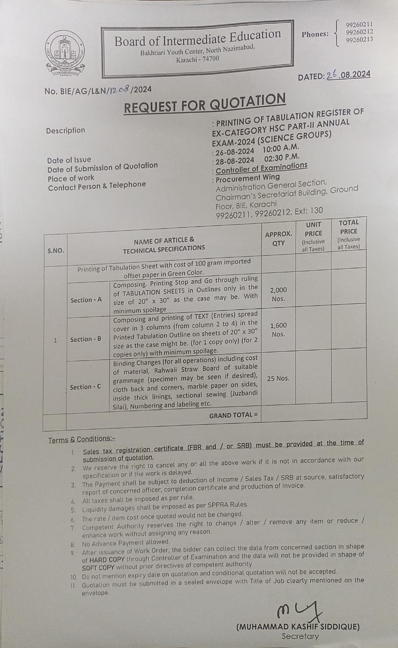 Request for Quoations for the printing of Tabulation Registers of Ex-Category 26-08-2024
